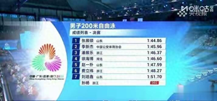 11月12日晚,第十五届全运会男人200米解放泳决赛在深圳大运中心游水馆燃情演出,一场“新老对决”爆出超大冷门!18岁山东小将张展硕以1分44秒86的惊东谈主获利逆袭登顶,浙江队奥运冠军潘展乐1分46秒37摘铜,而33岁宿将孙杨因抢跳犯规被取消沿途获利,缺憾离场。