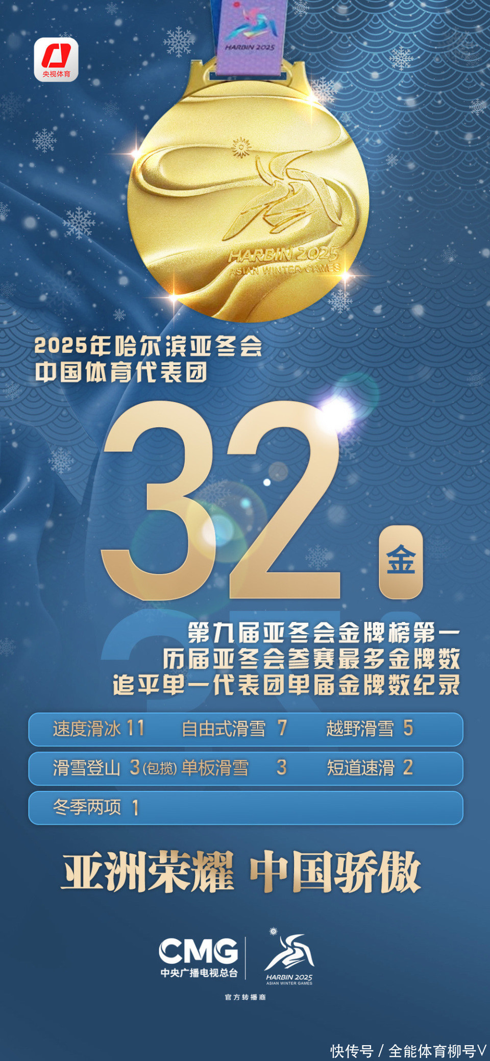 北京技艺2月15日讯息,2025年第9届亚洲冬季通顺会圆满结果。本届亚冬会,中国代表团统统赢得32金27银26铜,奖牌总额为85枚,金牌和奖牌齐高居第一位。同期,还追平了哈萨克斯坦代表团创造的32枚金牌的单届金牌数记载。