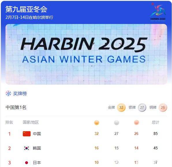 2025年第9届亚洲冬季通顺会2月7日晚在哈尔滨恢弘开幕。动作人,哈尔滨不仅为全体亚洲冰雪健儿奉献了相配无缺的赛场与赛事处事,中国代表团在体育场的举座阐扬相通相配出色,首个比赛日夺得8枚金牌,高居金牌榜和奖牌榜的第一位。