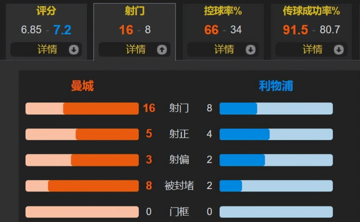 曼城天然占据了66%的控球率,但紧迫端零落抑止,16次射门仅5次射正。德布劳内状况低迷,屡次传球乌有,多库天然屡次大略阿诺德,但未能造成骨子抑止。反不雅利物浦,萨拉赫和索博斯洛伊的勾搭理解,紧迫端屡屡制造杀机。