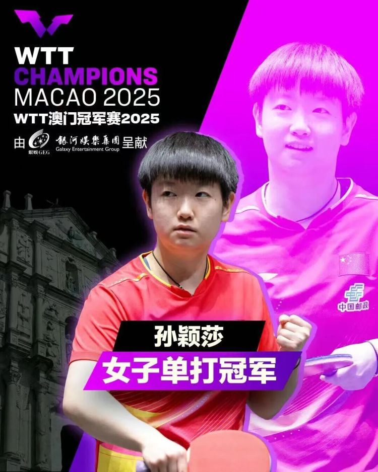 9月14日晚,WTT澳门冠军赛2025落下帷幕,王楚钦、孙颖莎鉴识取得男单、女单冠军。
